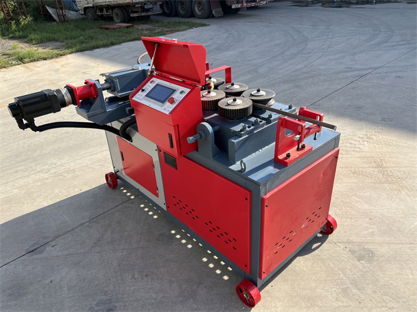 数控九轮钢筋弯弧机,显示屏数控化控制,一次可以在一根钢筋中弯曲2到10种不同弧度,精准计米器配合伺服电机顶进,多个不同弧度的半径自动调整。