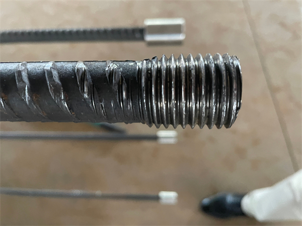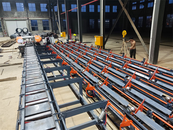 数控钢筋锯切套丝生产线,生产过程演示。一,将钢筋调运到钢筋上料传送架,二,主界面设置参数,启动自动功能,设备进入自动工作状态。三,钢筋,由进料轨道,经过锯床,自动锯切到相应的长度,送达到出料轨道。四,钢筋由自动翻料装置,翻转和传送至套丝工位,完成自动套丝。五,自动打磨套丝后的钢筋将自动传送至打磨工位,完成自动打磨。六,成品入库打磨后的钢筋将自动传送至成品料仓,等待周转运输。锯切套丝打磨生产线加工好的成品,完全达到工程要求,得到了监理的肯定。锯切套丝打磨生产线主要包含上料机构、锯切前输送线、锯切机、锯切后输送线、自动翻转机构、套丝机两台、打磨机两台,储料平台若干、电控系统等。