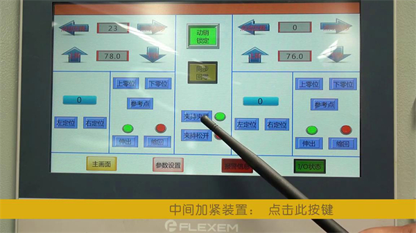 11. 中间加紧装置:点击此按键,可以测试中间加紧装置,气缸的加紧或者松开情况。