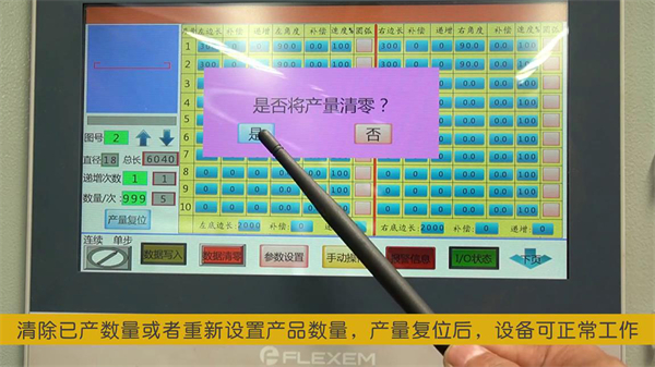 16. 数量设置:可根据现场生产需要,设置产品生产数量,达到设置的数量后,设备会自动停止生产,可使用产量复位件,清除已产数量或者重新设置产品数量,产量复位后设备可正常工作。